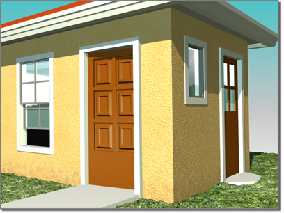 Remarque : 3ds Max n'affecte pas automatiquement de matériau à l'objet porte. Pour utiliser le matériau inclus, ouvrez la bibliothèque, puis affectez le matériau à l'objet.
