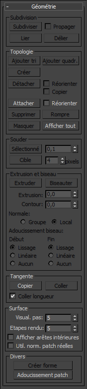 Les poignées sont également accessibles au niveau du sous-objet Sommet, mais le niveau de sous-objet Poignée offre les fonctionnalités améliorées suivantes :
