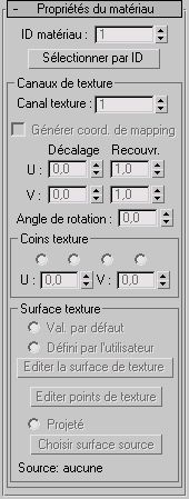 Ce panneau déroulant contrôle le mapping de matériau sur un sous-objet surface NURBS.