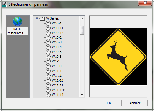 - Cliquez sur ce bouton pour affecter une définition de face de panneau depuis les bibliothèques standard d'objets Panneau de Civil View. La face de panneau est appliquée à la face avant de tous les feux de signalisation.
