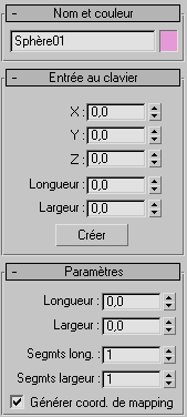 Cette option crée une grille plate comportant, par défaut, 36 facettes rectangulaires visibles. Une ligne invisible divise chaque facette en deux faces triangulaires, pour un total de 72 faces.