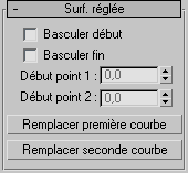 Si vous activez le bouton réglé ou qu'un sous-objet surface réglée est sélectionné, un panneau déroulant affiche les paramètres de la surface réglée au bas du groupe de fonctions Modifier.