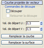 Modifient l'emplacement UV de la valeur de départ sur la surface. S’il existe plusieurs projections, la plus proche du point de la valeur de départ est utilisée pour créer la courbe.
