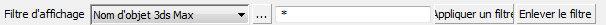 - Nom d'objet 3ds MaxAffiche uniquement les objets correspondant à tout ou partie d'un masque de nom d'objet 3ds Max.