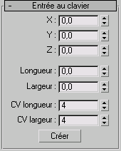 Les champs longueur et largeur du groupe de fonctions Modifier ne sont plus disponibles. Vous pouvez modifier la longueur ou la largeur de la surface en redimensionnant cette dernière au niveau de sous-objet Surface. Le déplacement des sous-objets CV modifie également la longueur et la largeur de la surface.