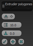 Le paramètre Extruder polygones utilise l'interface du chariot lorsque l'option Activer commandes chariot est activée. Pour plus de détails sur l'utilisation des commandes du chariot, reportez-vous à la rubrique Interface du chariot.