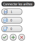 Connecter les arêtes utilise l'interface de chariot lorsque l'option Activer commandes chariot est activée. Lorsque cette dernière est désactivée, la boîte de dialogue des paramètres standard est utilisée. Pour plus de détails sur l'utilisation des commandes du chariot, reportez-vous à la rubrique Interface du chariot.