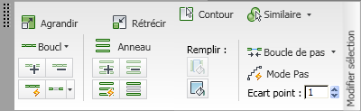 Le groupe de fonctions Modifier sélection contient des outils permettant d'ajouter et de retirer des éléments dans des sélections de sous-objets, de manière générale et en ce qui concerne les boucles et les anneaux.