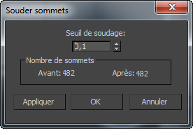 Utilisez cette boîte de paramétrage pour définir le seuil de soudage des sommets et des arêtes et afficher un aperçu du nombre de sous-objets à souder.