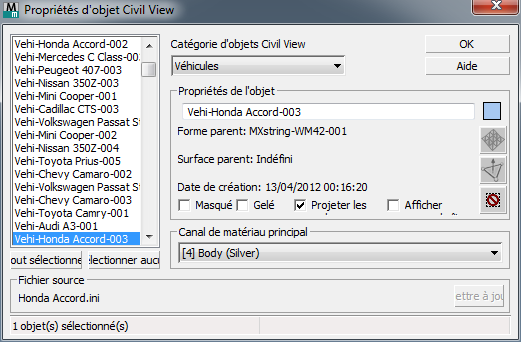 Les objets créés dans 3ds Max, mais pas par Civil View, n’apparaissent pas dans ce groupe de fonctions. En outre, lorsque ce groupe de fonctions est actif, vous ne pouvez pas sélectionner de tels objets dans les fenêtres.