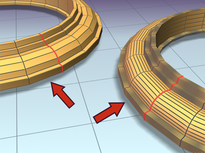 Lorsque cette option est activée, l'extrusion est analysée et le nombre de divisions du chemin est recalculé pour générer une peau satisfaisante. Les principales divisions du chemin sont placées sur les sommets du chemin, les positions des formes et les sommets des courbes de déformation. Lorsque cette option est désactivée, les divisions principales du chemin sont placées uniquement sur les sommets du chemin. Cette option est activée par défaut.