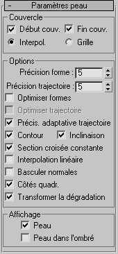 Le panneau déroulant Paramètres peau permet de définir la complexité du maillage de l'objet extrudé. Vous pouvez également optimiser le maillage en contrôlant le nombre de faces.