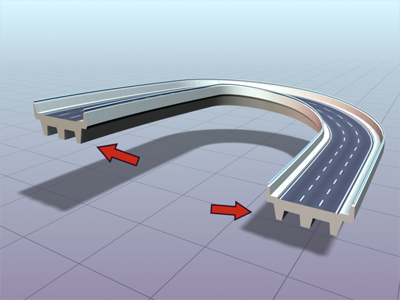 Route extrudée avec l'option Inclinaison activée.