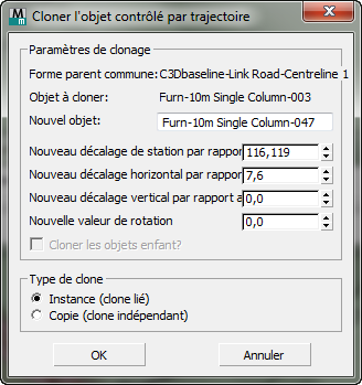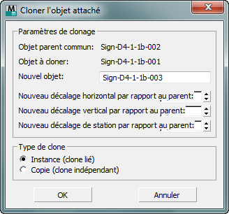 Cette option affiche une boîte de dialogue dont le contenu dépend du type d'objet.