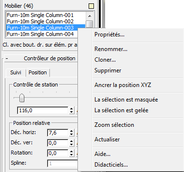 Le contenu du menu contextuel varie en fonction du type de l'objet. Exemples du type d'opération possible à partir de ce menu :