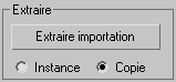 Si l'option Copier est sélectionnée (par défaut), l'objet extrait est une copie de niveau supérieur de l'objet importé. Si l'option Instance est sélectionnée, l'objet extrait est une instance de l'objet importé. Initialement, l'objet extrait occupe le même espace que l'objet importé. Pour le voir, vous devez déplacer l'un ou l'autre ou bien l'ensemble du modèle NURBS.