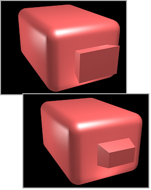 Les commandes Chanfrein sont disponibles uniquement aux niveaux de sous-objet Sommet et Arête. Elles vous permettent de biseauter les coins des objets à l'aide d'une fonction Chanfrein. Vous pouvez appliquer cet effet de manière interactive, en faisant glisser les sommets, ou de façon numérique, en vous servant de la double flèche Chanfrein.