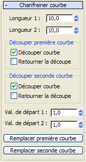Ces deux zones permettent de contrôler la façon dont les courbes parents sont découpées. Les commandes sont identiques dans les deux zones. " Première " et " seconde " dépendent de l'ordre dans lequel vous avez sélectionné les courbes parents.
