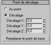 Le panneau déroulant Point de décalage s'affiche lorsqu'un sous-objet point de décalage est sélectionné.