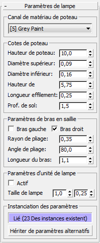 - Lorsque cette option est activée, le bras correspondant de la colonne de lampe apparaît.