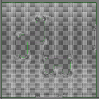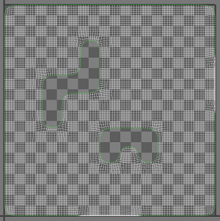 - Gère la façon dont le lissage est appliqué aux UV de contour. Les illustrations suivantes montrent le maillage précédent une fois lissé dans l'éditeur du modificateur Développer UVW.