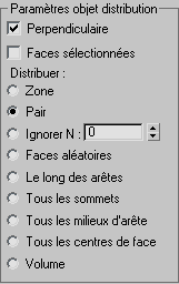 - Ces options permettent de spécifier la manière dont la géométrie de l'objet de distribution détermine la distribution de l'objet source. Ces options sont ignorées si vous n’utilisez pas d’objet de distribution.