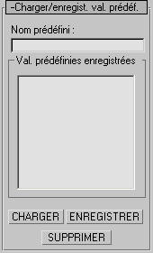 - Charge la valeur prédéfinie sélectionnée dans la liste Val. prédéfinies enregistrées.
