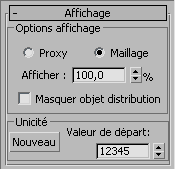 - Spécifie le pourcentage du nombre total de copies d'objet qui sera affiché dans les fenêtres. Ceci n'affecte pas le rendu de la scène.