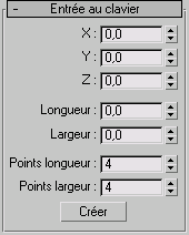 Permet de définir les cotes de la surface (exprimées dans l'unité 3ds Max courante).