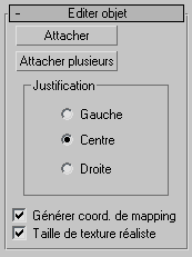 Définit la méthode de mise à l'échelle utilisée pour les matériaux dotés de textures qui sont appliqués à l'objet. Les valeurs de mise à l'échelle sont contrôlées par les paramètres Utiliser échelle réaliste du panneau déroulant Coordonnées du matériau appliqué. Cette option est désactivée par défaut.