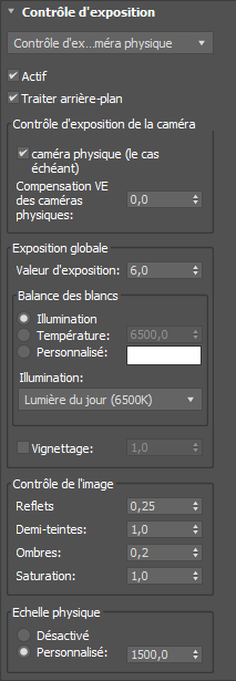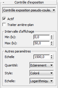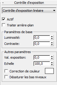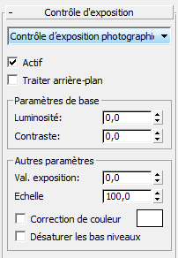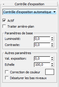 Il s'agit de plug-ins qui permettent de régler les niveaux de sortie et la gamme de couleurs du processus de rendu, à l'instar des réglages d'exposition d'un appareil-photo. Les contrôles d'exposition sont particulièrement utiles pour les rendus faisant appel à la radiosité ou aux systèmes de lumière du jour physiquement précis.