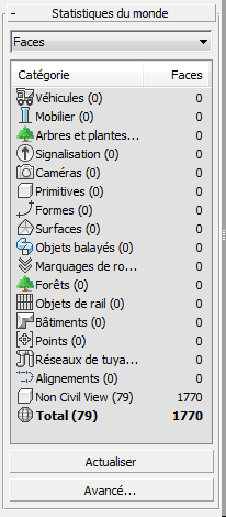 Affiche les Catégories d’objets Civil View et le nombre total d’objets existant dans chaque catégorie de la scène actuelle.