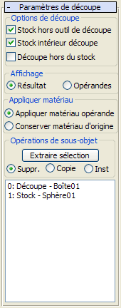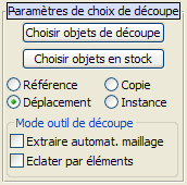 Zone des options de découpe, choisissez les parties des originaux que vous souhaitez conserver : stock hors objets de découpe, stock parmi objets de découpe, objets de découpe hors stock.