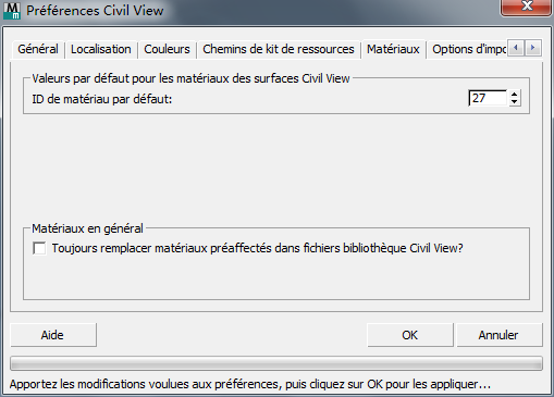 Toujours remplacer les matériaux préaffectés dans les fichiers bibliothèque Civil View?