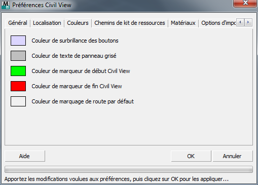 L'onglet Préférences Civil View permet d'accéder directement aux paramètres par défaut utilisés par Civil View.
