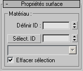 - Sélectionne les segments ou splines correspondant à l'ID de matériau défini dans le champ ID situé à côté. Entrez l'ID manuellement ou à l'aide de la double flèche, puis cliquez sur le bouton Sélect. ID.