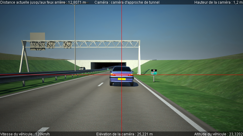 Le Vérificateur de distance de visibilité permet de configurer un simple contrôle visuel des lignes de vue sur les voies rapides. Pour ce faire, il effectue un suivi et une analyse de la position et de la distance entre le point de vue actuel et un ou plusieurs objets cibles après le rendu de chaque image d'une animation. Toutes les distances calculées sont des distances en ligne droite.