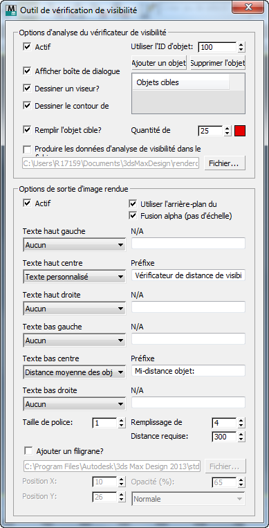 - Lorsque cette option est activée, les données d'analyse de visibilité sont enregistrées dans un fichier texte.