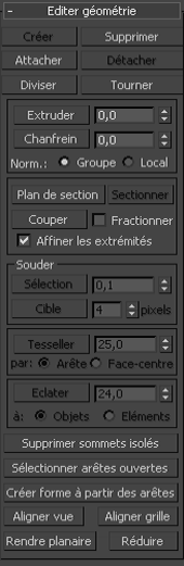Pour obtenir une description détaillée de ces commandes, reportez-vous à la rubrique Panneau déroulant Editer géométrie (Maillage).
