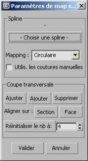 Permet de spécifier une spline à utiliser pour le mapping. Cliquez sur ce bouton puis sélectionnez la spline. Une fois la spline spécifiée, son nom apparaît au-dessus du bouton.