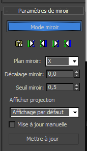 Conseil : vous pouvez utiliser les options Positive et Négative pour projeter provisoirement de l'autre côté l'affichage des sommets d'un côté, afin de contrôler l'axe des sommets. Ceci peut s'avérer pratique lorsqu'il s'agit de déterminer les paramètres appropriés du plan du miroir dans le cadre d'un maillage asymétrique.