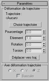 Pour tous les paramètres à l'exception des suivants, reportez-vous à la rubrique consacrée au modificateur Déformation trajectoire.