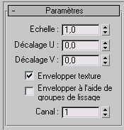 Spécifient respectivement les décalages horizontal et vertical. Cette option est uniquement disponible lorsque Envelopper texture est désactivé.