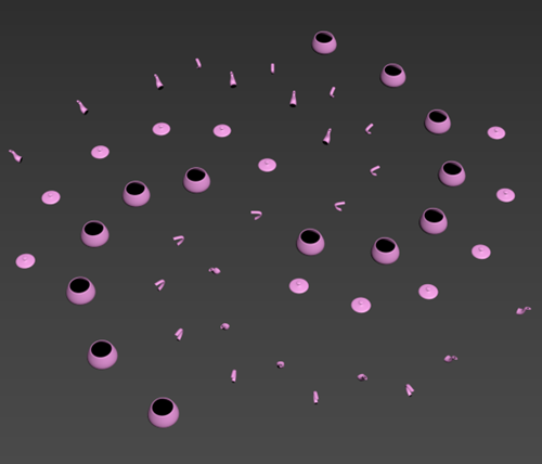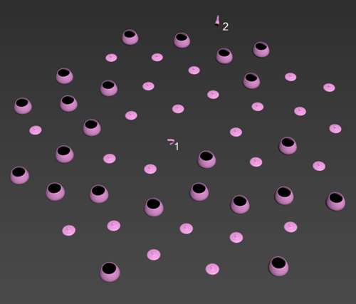 - Lors de la création d’un réseau composé d’éléments à utiliser comme clones, cela facilite la disposition des éléments individuels le long d’un axe afin qu’ils n’aient pas besoin de résider au même emplacement par rapport au pivot. Quand cette option est désactivée, chaque élément utilise sa position relative par rapport au point de pivot de l’objet source.