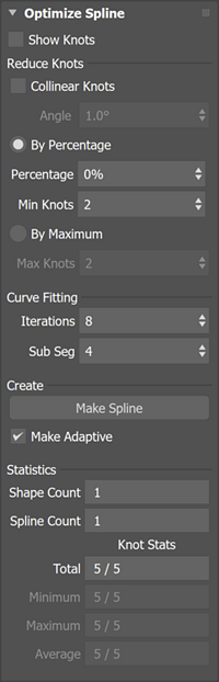 Panneau déroulant Optimiser la spline