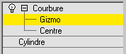 A ce niveau de sous-objet, vous pouvez transformer et animer le gizmo comme n’importe quel autre objet en modifiant l'effet du modificateur Courbure. La translation du gizmo opère une translation de son centre à une distance égale. La rotation et la mise à l'échelle du gizmo s'effectuent par rapport à son centre.