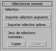 Sélectionne des sommets en fonction de la dernière sélection de segment ou de spline. Cette sélection est ajoutée à la sélection courante. Cette option n’est disponible que lorsque Sommet n’est pas le niveau de sous-objet courant.