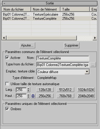 - Colonne Nom du fichieraffiche le nom de la texture qui va être générée.