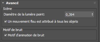 - Cette option permet de varier le motif de bruit de chaque image d'un rendu d'animation. Elle est recommandée pour les rendus d'animation de haute qualité, car elle permet de générer un aspect plus naturel semblable à un grain film.