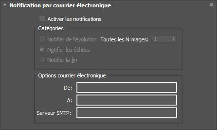 - Lorsque cette option est activée, l'outil de rendu émet une notification par courrier électronique lorsque certains événements se produisent. Cette option est désactivée par défaut.